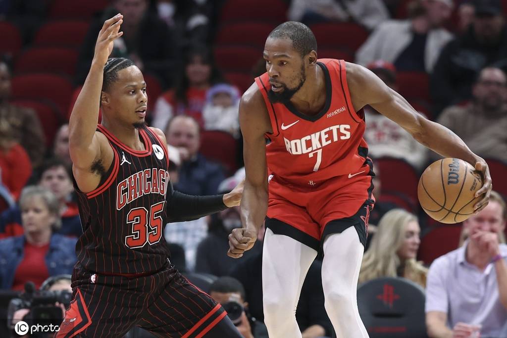 北京时间1月14日,2025-2026赛季NBA常规赛继续激战,其中主场作战的休斯顿火箭队以119-113战胜了芝加哥公牛队,结束3连败。杜兰特全场23投12中,贡献了28分10篮板4助攻,他从第三节开启“死神”模式帮助球队实现反超,而第四节则是带队打出一波攻击波锁定胜局。